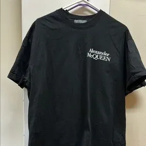 Experience the perfect blend of style and comfort with this Alexander McQueen black short sleeve tee. Crafted from high-quality cotton, it features the brand's iconic typography in bold white text, creating a striking contrast against the black fabric. Ideal for casual outings, this tee embodies the essence of modern fashion.