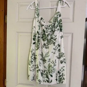 Abercrombie Corset Seamed Linen-Blend Mini Dress, green floral color. Worn once. Pet free, smoke free home.
