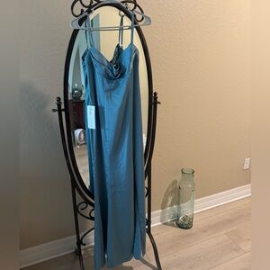Azazie unworn bridesmaid dress with tags still on. Size A4. Satin moody blue