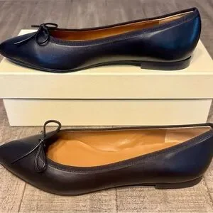 Margaux Black Point Toe Ballet Flat 39.5 New With Box