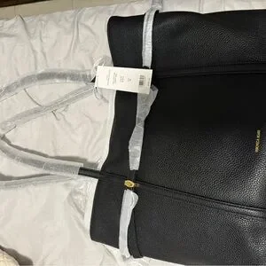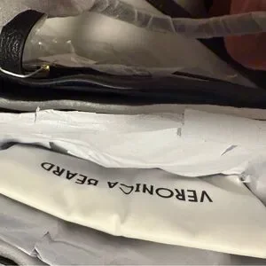 Chic black handbag by Veronica Beard. Features textured leather and subtle branding.