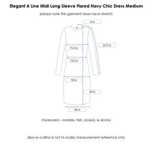 Womens Elegant A Line Midi Long Sleeve Flared Navy Blue Chic Dress Medium