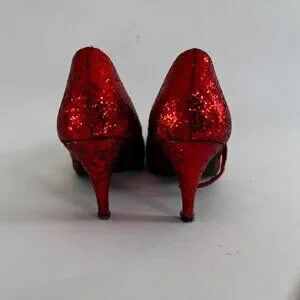 2000s Halloween fun! Glitter red two inch strap ruby red slippers for your Dorothy Wizard of Oz / Wicked costume this halloween. True vintage, these days they only make the red slippers with sequins.