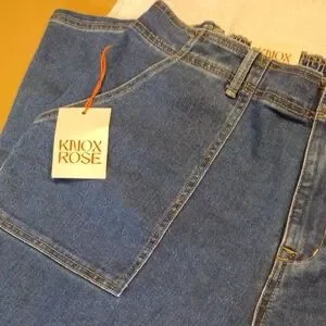 Discover the timeless appeal of Knox Rose blue denim jeans, crafted with a classic straight-leg cut. These jeans feature a rich blue hue, showcasing the brand's commitment to quality and style. Perfect for everyday wear, they offer a comfortable fit and a versatile look. High rise relaxed hips and thighs elastic waist straight leg jeans with two front side pockets and two back pockets. Inseam is 30 inches and waist 40 inches, excellent condition never worn, no discolorations, no rips tears or pulls. has original tags, smoke-free home no pets. Make me an offer 🙂