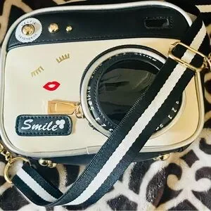 Fun and Unique Black and Cream Camera Design Crossbody Bag