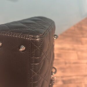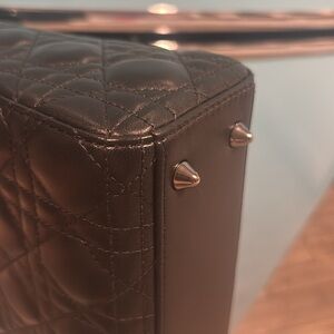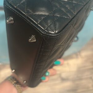 Lady Dior small ABC black with gunmetal hardware. Very good to excellent condition. I bought the bag from the Dior boutique about 4 years ago and I only wore it a few times. It was always stored in its box. Very little signs of wear. Gorgeous Lady Dior! Comes with newer thick strap, 2 charms attached to strap, Dior box and Dior dust too!