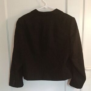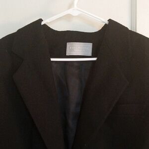 The Evan Picone Black Blazer is a sophisticated addition to any wardrobe, featuring a sleek minimalist design and traditional lapels. Crafted from solid black fabric, this blazer offers a tailored fit and long sleeves, making it ideal for business or formal occasions. Its versatile style ensures it complements a variety of outfits, providing both elegance and professionalism.