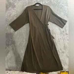 Everlane the ribbed wrap midi 3/4 sleeve dress