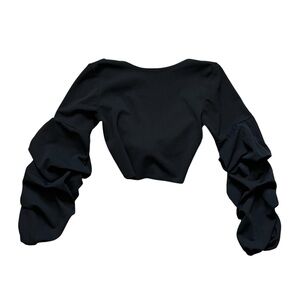 Elegant black that matches everything. Puffed scrunched long sleeves. Twisted fabric central front. No tags.