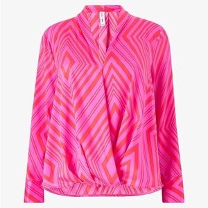 Mango Geometric Satin Print Blouse Size 8
