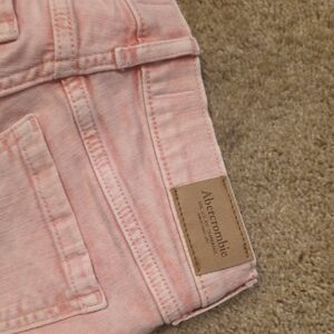 These Abercrombie & Fitch jeans feature a light pink cokor and a trendy flare and wide leg design. There are 2 front and 2 back packets, zipper closure.