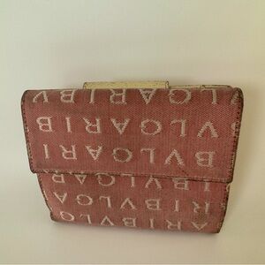 Bulgari Pink Wallet BVLGARI Pink Logo Canvas Bifold Wallet Authentic
