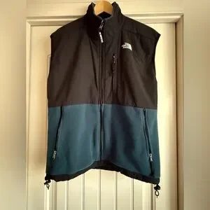 Experience the perfect blend of style and functionality with The North Face black and teal fleece vest. Designed for those who value both comfort and durability, this vest is crafted from high-quality materials that ensure warmth and breathability. Ideal for outdoor activities, its sleek design and modern aesthetic make it a versatile addition to any wardrobe. It features a cinch drawstring on the waist, zippered hand and chest pockets.