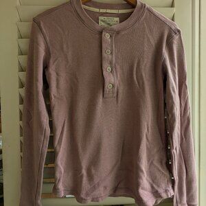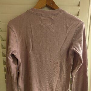 Farlands Henley lavender long sleeve top. Picture 1 and 2 show the color best. Good condition. Hemp and cotton base layer.