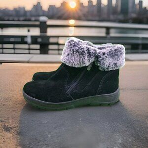 ✅Khombu JESSICA Black Suede Faux Fur Lined Side Zip Ankle Booties Womens 8M Shoe