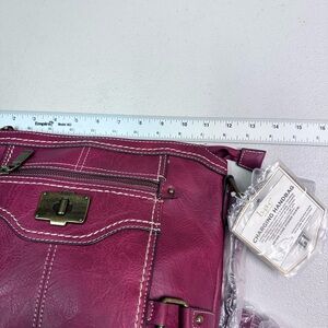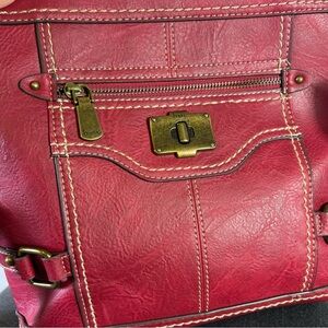 This striking red crossbody bag is made from high-quality materials, providing a stylish and sophisticated look. The gold-toned zipper adds a touch of elegance, making it a versatile accessory for various occasions.