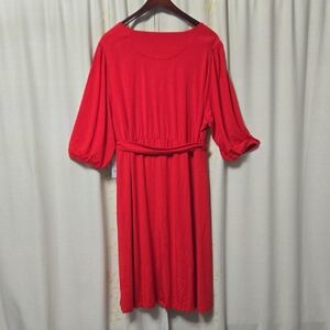 Draper James Red Wrap Midi Dress with Bishop Sleeves