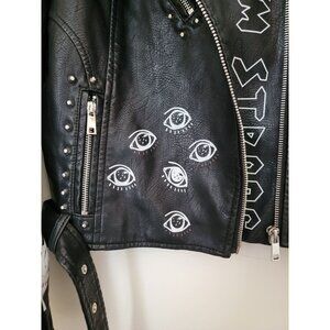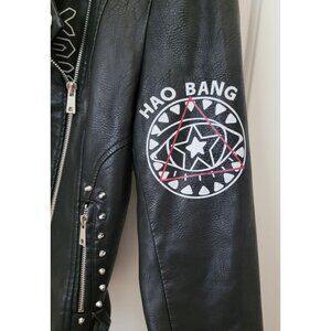 BLUE B Black Vegan Leather Graffiti Punk Moto Jacket w/Studded Accents Size S