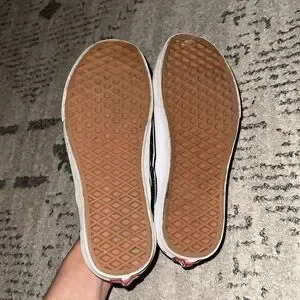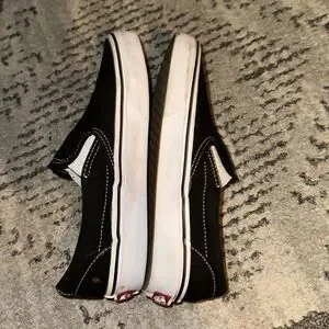 Vans Shoes Slip On Black Sneaker White Classic Skater Logo Tag Womens 7 Men 5.5