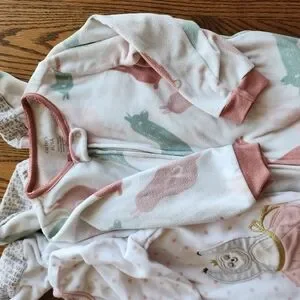 Keep your little one snug with this adorable pink and white fleece pj cozy set. Perfect for comfort and warmth. Great condition, very soft not a lot of wear on the fleece at all, perfect for the upcoming colder months. neutral tones, ivory & blush nude colors. so cute! fun animal prints with Llamas & sloths