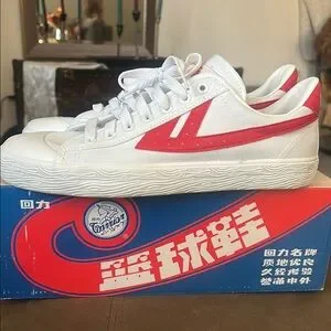 White and Red Athletic Shoes