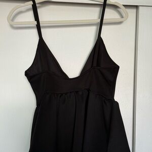 Stylish black peplum top with spaghetti straps. Perfect for any occasion. Some boning by the cup. Scuba like material. Worn once.