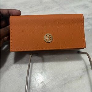 These Tory Burch glasses feature a chic cat-eye design with a rich brown frame, offering a modern and sophisticated look. Crafted from durable materials, they provide both style and functionality, making them a perfect accessory for any occasion. The glasses come with a matching protective case, ensuring your eyewear stays safe and stylish.