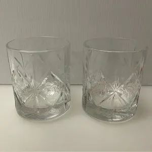 DEWAR’S (2) Scotch Whiskey Glasses Celtic Truth Knot Set of 2 Heavy Cut Glass