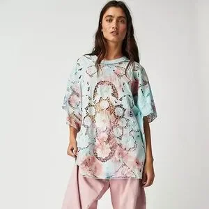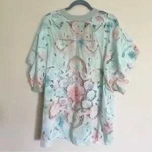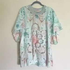 Embrace a relaxed and artistic vibe with the Free People Sunrise Top. This top features a modern, loose-fitting silhouette with a classic crew neck, perfect for casual outings. The soft subtle pastel tie dye tones add a touch of freshness, while the short sleeves enhance its laid-back style. Oversized, relaxed fit and flutter sleeves. Ideal for those who appreciate comfort without compromising on style. Measurements are: 25 inches armpit to armpit and approximately 29 inches from shoulder seam to hem. Size M. No stretch. NWOT.