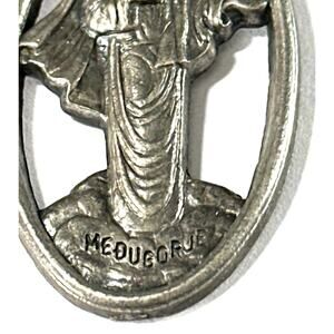 This spiritual necklace features light wood beads hand-linked with silver-tone wire and a detailed openwork Virgin Mary pendant stamped Medugorje. Medjugorje is a revered site of Marian apparitions, making this piece ideal for collectors, pilgrims, or anyone devoted to the Blessed Mother. Measures approx. 13.5” long, wearable or displayable.