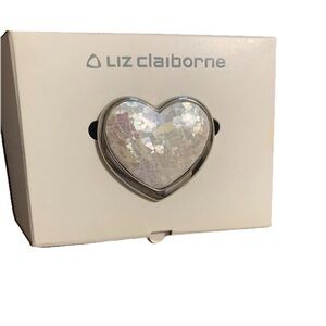 Vintage Liz Claiborne Heart-Shaped Silver and White Brooch