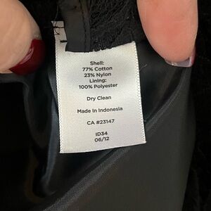 EUC Excellent condition! Black lace overlay. Jacket or blazer. Work or dinner party! Measurements in photos. Polyester/Cotton/Nylon blend. Women’s size 14 by Talbots. Smoke free home