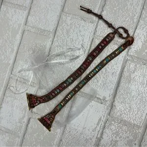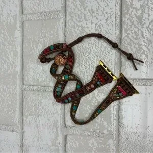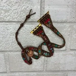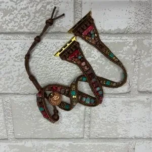 Add a touch of bohemian flair to your outfit with this beautifully crafted beaded bracelet. Featuring vibrant red, turquoise, and gold tones, this accessory is perfect for any occasion. Fits Apple Watch 7. Adjustable to fit to gut or loose. I have small wrists and this worked beautifully. It’s a beautiful band but I prefer a regular ol band. 😝