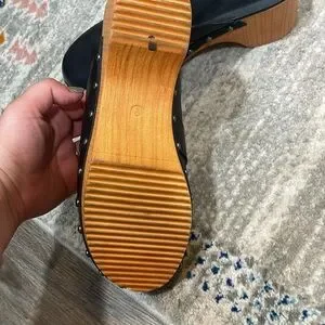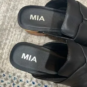 MIA Black Leather Clogs with Wooden Heels