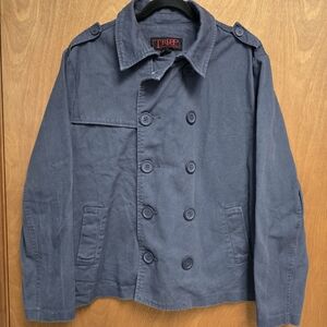 Gray denim double breasted Tripp Jacket.