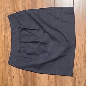 Simple, yet sophisticated navy blue skirt from LOFT. Perfect for the office! 2 side pockets...I love it when skirts have pockets!Button details adorn the waistband. The material is a Rayon, Cotton, Polyester, Spandex blend. The color is navy blue with a bit of lighter color woven throughout. I tried to get a good image of the material color and weave in the last picture.