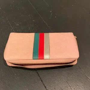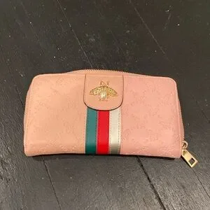 Pink and Green Honey bee Wallet with Gold Hardware and Structured Design
