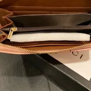 This stylish honey bee wallet showcases a vibrant blend of pink and green, accentuated by luxurious gold hardware. Its structured design offers a sophisticated look, perfect for any occasion.