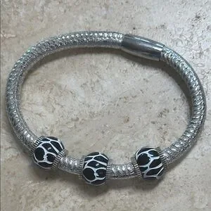 Brighton Woodstock 8” Silver Charm Bracelet with Black and White Beads
