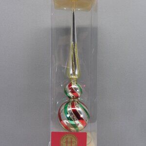 The Home For The Holidays Glass Tabletop Multi Color Finial Christmas Decor is a festive and colorful addition to your holiday table decor. Made of glass, this tabletop finial features a multicolor design that is perfect for celebrating Christmas. The elegant silver accents add a touch of sparkle to your holiday display, making it a standout piece for your seasonal table centerpiece. This collectible item is sure to be a cherished part of your Christmas decorations for years to come. Would look very nice with a small wreath or garland around the base.