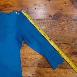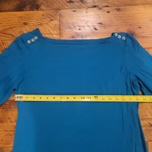 Comfy teal dress featuring silver button accents on the shoulders and wrists. Made of knit fabric, this dress feels so smooth against the skin.