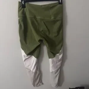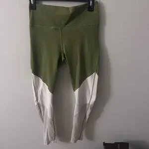 Stylish olive and white leggings. Perfect for workouts or casual wear.