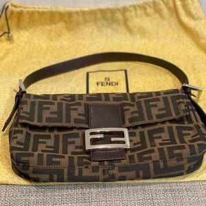Authentic Fendi Zucca FF Baguette Shoulder Handbag Purse & Dust Bag Pre-owned