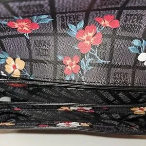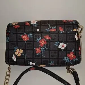 Steve Madden black crossbody bag with vibrant floral design. Is pre-loved and clean inside and out. No call outs noted from visual inspection. See photos. Sold as is. No refund or exchanges.
