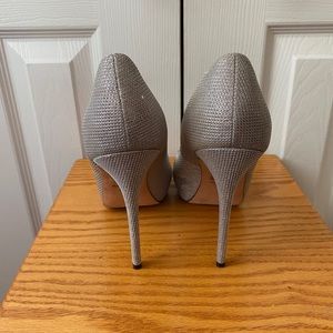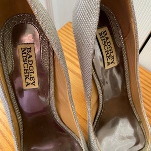 Badgley Mischka Silver Sparkle Platform Peep Toe Wedding Formal Pumps SZ 8.5