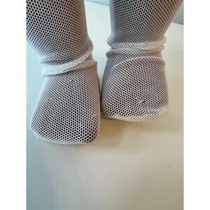 * Small hole on foot of tights and on white dress, where the sequin gold cover was attached to the doll by the manufacturer. No shoes.