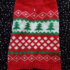 This cozy dog sweater is designed in vibrant red and green, adorned with delightful holiday patterns. Perfect for keeping your furry friend warm and stylish during festive celebrations.