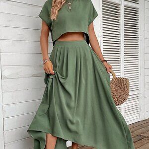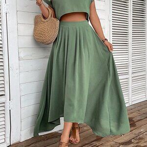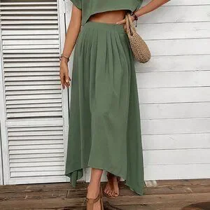 Green Boho Womens Women's Solid Color Loose Casual Two-Piece Set