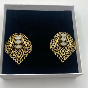Vintage Filigree Brass Gold Plated Opal Earrings