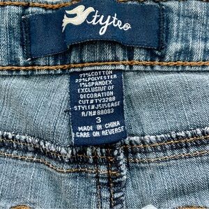 These RSQ blue jean shorts feature a classic distressed design with frayed edges and a raw, unfinished hem. The shorts offer a casual, worn-in look with varying shades of blue, perfect for a laid-back summer vibe. All different brands, all 3 included